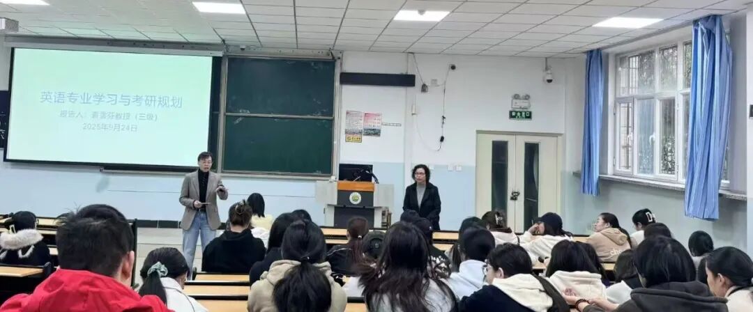 9月24日下午,外国语学院特邀中南民族大学袁雪芬教授,在1号楼1103教室为2023级全体英语专业学生作“英语专业学习与考研规划”专题讲座。讲座由英语系主任唐彬主持。