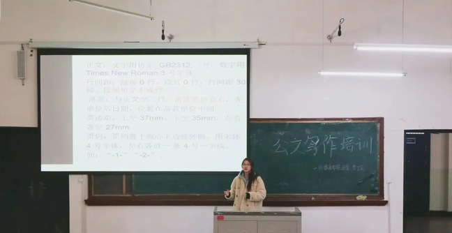 首先,外国语学院团委宣传部负责人杨霜用PPT加讲解的形式,给大家讲解公文写作的文字规范,包括word文档的文字规范和excel表格的规范,并指出公文写作不仅在团委、学生会的工作中发挥重要作用,还对同学们未来的工作产生影响,鼓励大家利用此次培训机会学好公文写作。