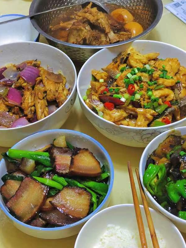 英语2102班谢佩怡:腊肉,川渝人家必不可少的年味,在春节期间,无论是远方归来的游子,还是留守在家的长辈,都会围坐在一起,享用腊肉佳肴,共度欢乐时光。因此,腊肉象征着团圆。
