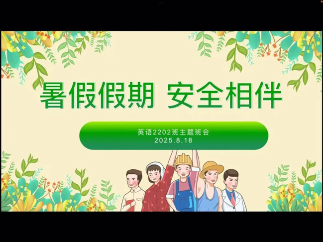 为筑牢假期安全防线,提高每一位外院学子的安全意识,确保大家度过一个平安、充实、快乐的假期,外国语学院各班级于近期组织了 “暑假假期,安全相伴”线上主题班会。现在,就让我们一起来回顾一下班会的重点内容,共同上好这堂“必修课”吧!